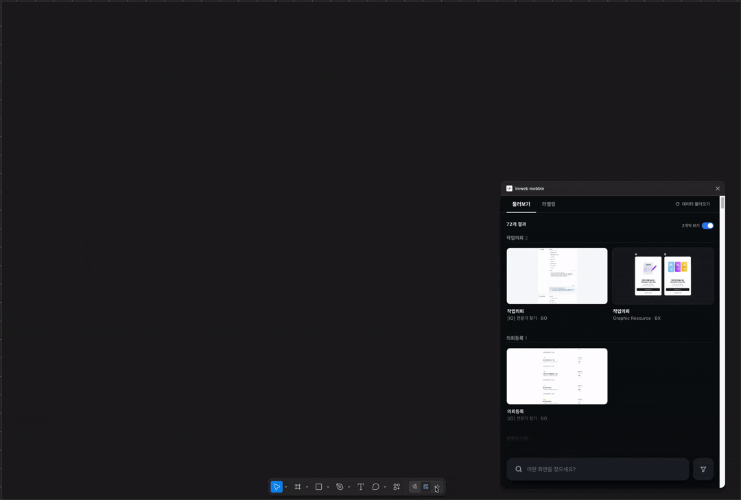 그렇다고 손 놓고 있긴 아쉬웠고 텍스트 기반 LLM의 한계를 넘어서는 기술과 제품이 나올 때까지, 디자인 자산을 AI 친화적으로 쌓아두며 준비하는 게 효율적이라는 생각이에요. 그래서 최근에 사고를 발산하는 단계를 도와주는 피그마 플러그인을 만들었어요. 이름은 imweb-mobbin. Mobbin을 오마주했어요. 당연히 클로드 코드와 함께 만들었죠.