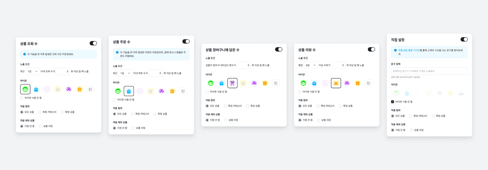 많은 판매자들이 구매자의 결정을 돕겠다며 외부 소셜 프루프 서비스를 비용을 내면서까지 붙이고 있었습니다. 우리가 직접 만들어야 할 이유가 충분했습니다.