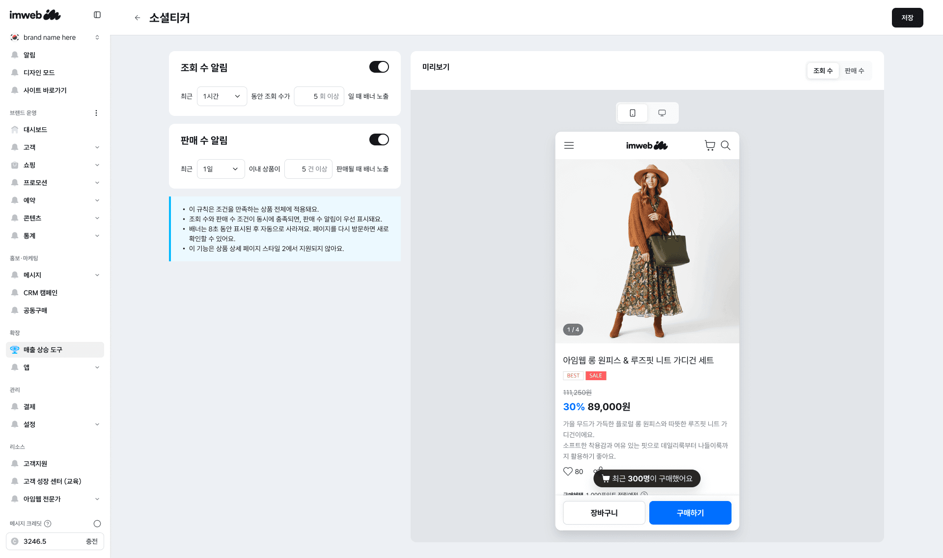 얼마 지나지 않아 VOC가 또 들어왔습니다. N개월 동안 N명이 구매했다와 같은 문구에 변수 설정을 직접하고 싶다는 요청이었습니다. 제가 끝까지 밀어붙이지 못했던 바로 그 기능이었습니다.